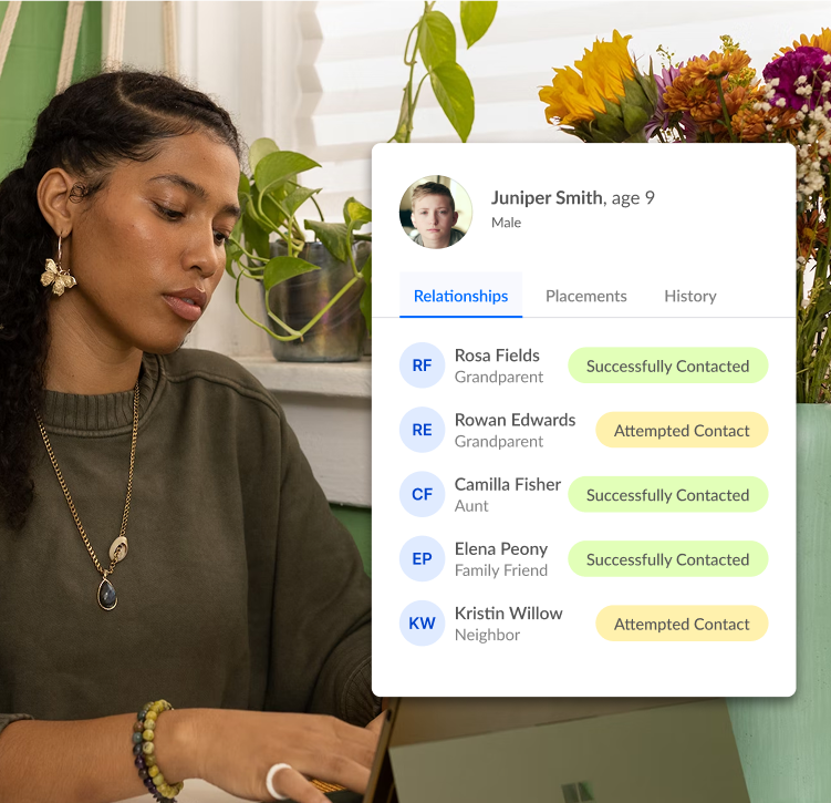 Ensure that children are supported by their closest connections through robust search, record, and visualization features to identify and engage a child’s kinship support network.