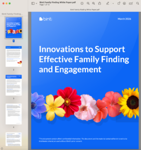 We are pleased to share our newly released Family Finding White Paper, which compiles family finding challenges, best practices, and how technology can drive even greater impact. The white paper is based on the direct shadowing and interviewing of over 40 agencies across 10 states, thought leaders, and those with lived experience in the Child Welfare system.